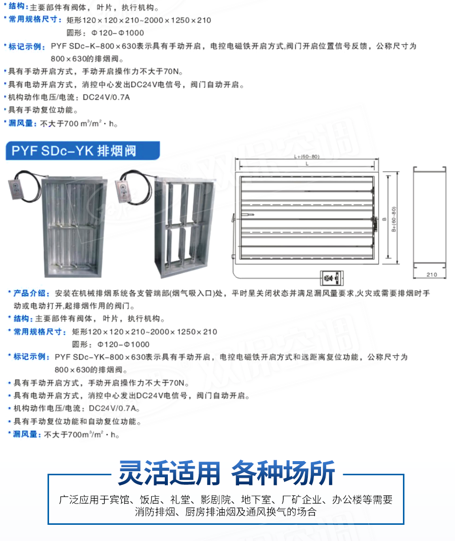 【閥門特點(diǎn)】CCCF認(rèn)證,輕巧實(shí)用,安全可靠,壽命長(zhǎng)久。一般安裝在防煙系統(tǒng)管道,平時(shí)常閉,遠(yuǎn)控開(kāi)啟。