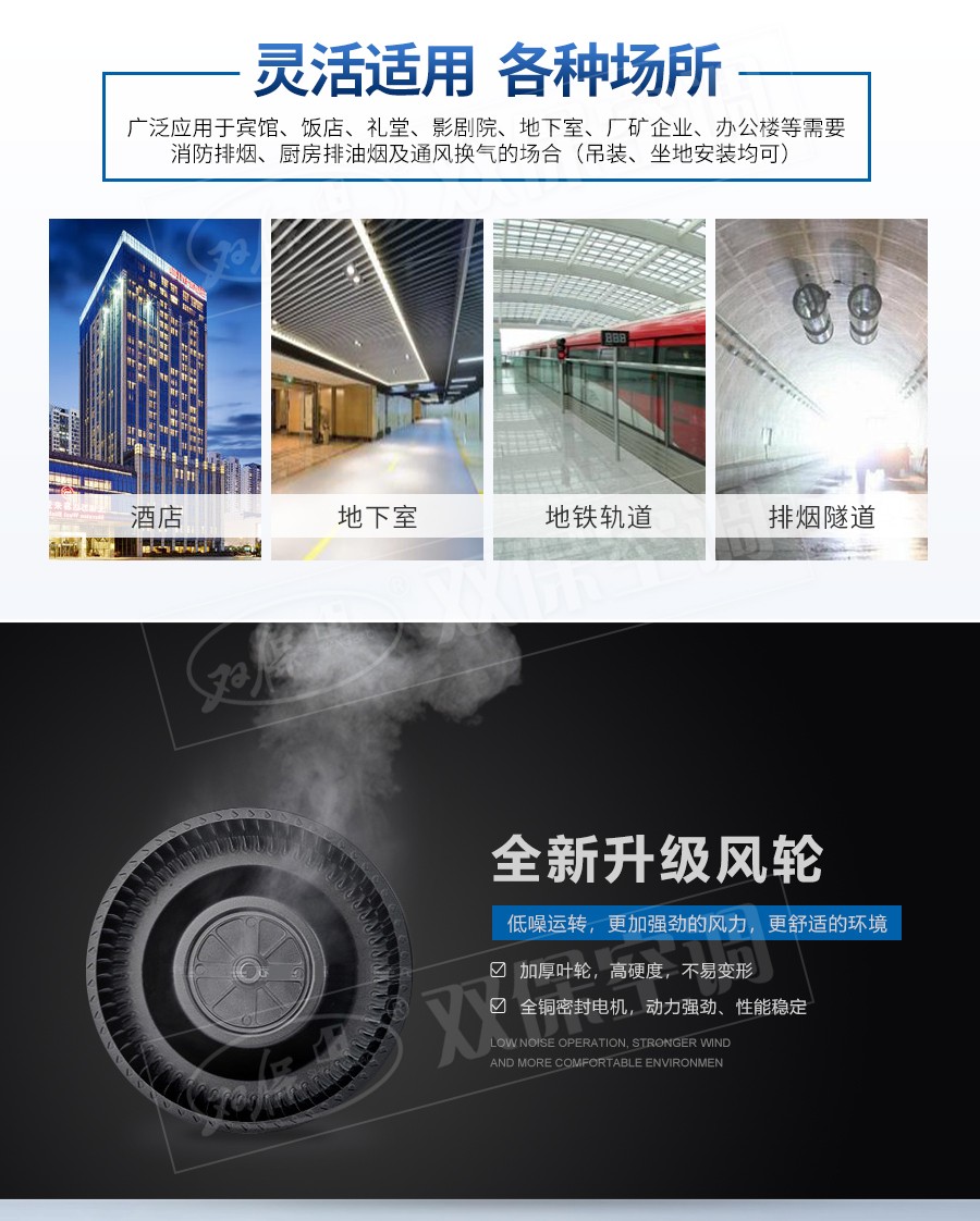 【風機特點】一機兩用、噪聲低、耐高溫性能優(yōu)良、結構新穎緊湊、振動小、重量輕、安裝維護方便等