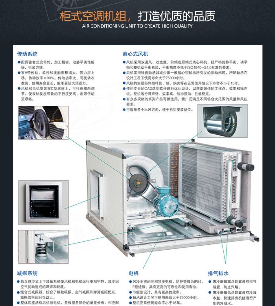 江蘇雙??照{有限公司—BFP系列柜式空調機組可實現對空氣的加熱、冷卻、加濕、過濾凈化等多種功能。廣泛應用于賓館、商場、機場、醫院、寫字樓等大中型公共建筑的舒適性空調和電子、紡織、化工、制藥、食品等行業的工藝性空調。該機組不僅具有制冷供熱性能優越、噪音低、高度薄、結構緊湊、重量輕、安裝維護方便的優點,而且還可以配上調頻或調壓變速控制器后。按四季不同工況與現場空調場合匹配進行變風量節能運行。因此特別適用于建筑物緊湊的各類空調工程場合使用。